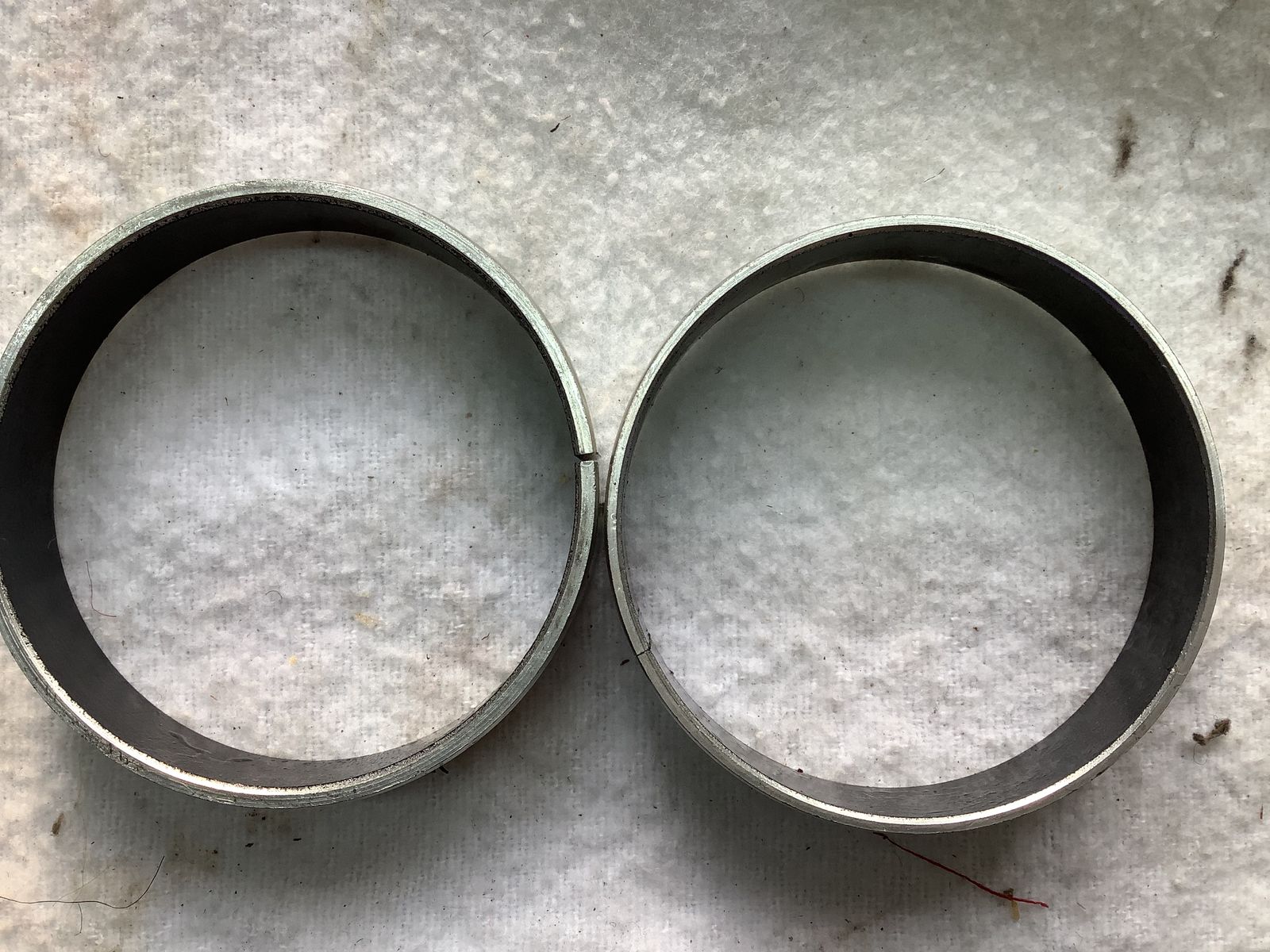 Jetzt sehe ich dass die Führungsbuchsen unterschiedliche Materialdicken haben, ergo Aussendurchmesser verschieden.
