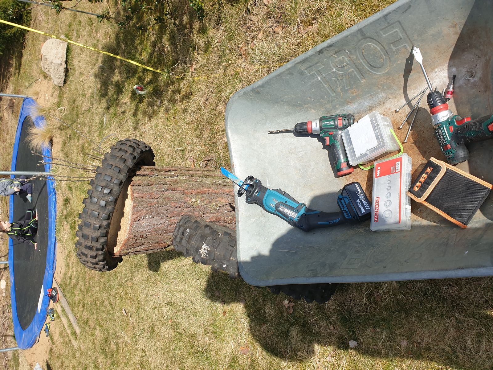 Mit der Säbelsäge (hab scheints die gleiche wie du) gehts mehr schlecht als recht, bei der Metallkreissäge werden die Reifen eingezogen und verklemmen das Blatt, ...