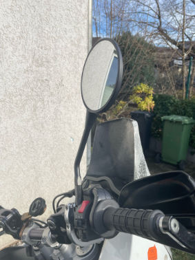 | Dort montiert man den Spiegel nicht , ersetze die Halteschelle der Armatur durch eine mit Spiegelgewinde M 10x1,25 mm
