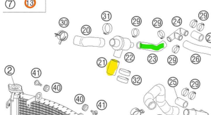 bei meiner ´12er ADV hat es vor Kurzem den Verbindungsschlauch Nr.25 zwischen den beiden Plastik-Verteilern rechts/links regelrecht platzen lassen - ein Längsriß mit ca.5cm Länge. Zum Glück stand ich gerade an einer Baustellenampel und hörte es unter mir plätschern! Auch hier war der Schlauch stark aufgebläht. Da ich die Maschine gebraucht gekauft habe und noch keine große Inspektion zu machen hatte, habe ich das leider nicht rechtzeitig entdecken können. Der neue Schlauch von KTM war in diesem Fall innert 3 Tagen da, sonst hätte ich für dieses gerade Stück auf Standardware zurückgegriffen. Gebogene Formschläuche würde ich allerdings nur durch ebensolche ersetzen, sonst gibt es mit der Zeit Engstellen im Durchlaß.