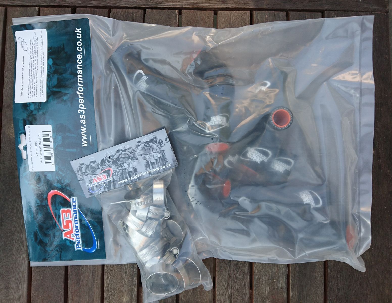 hm... die Engländer liefern für ca. 80 Euro in zwei Wochen einen Satz Silikonschläuche, in Deutschland für den doppelten Kurs bis zum Wochenende. Jeweils ohne Schellen. Hat jemand Erffahrung mit AS3 Schläuchen oder mit Samco?