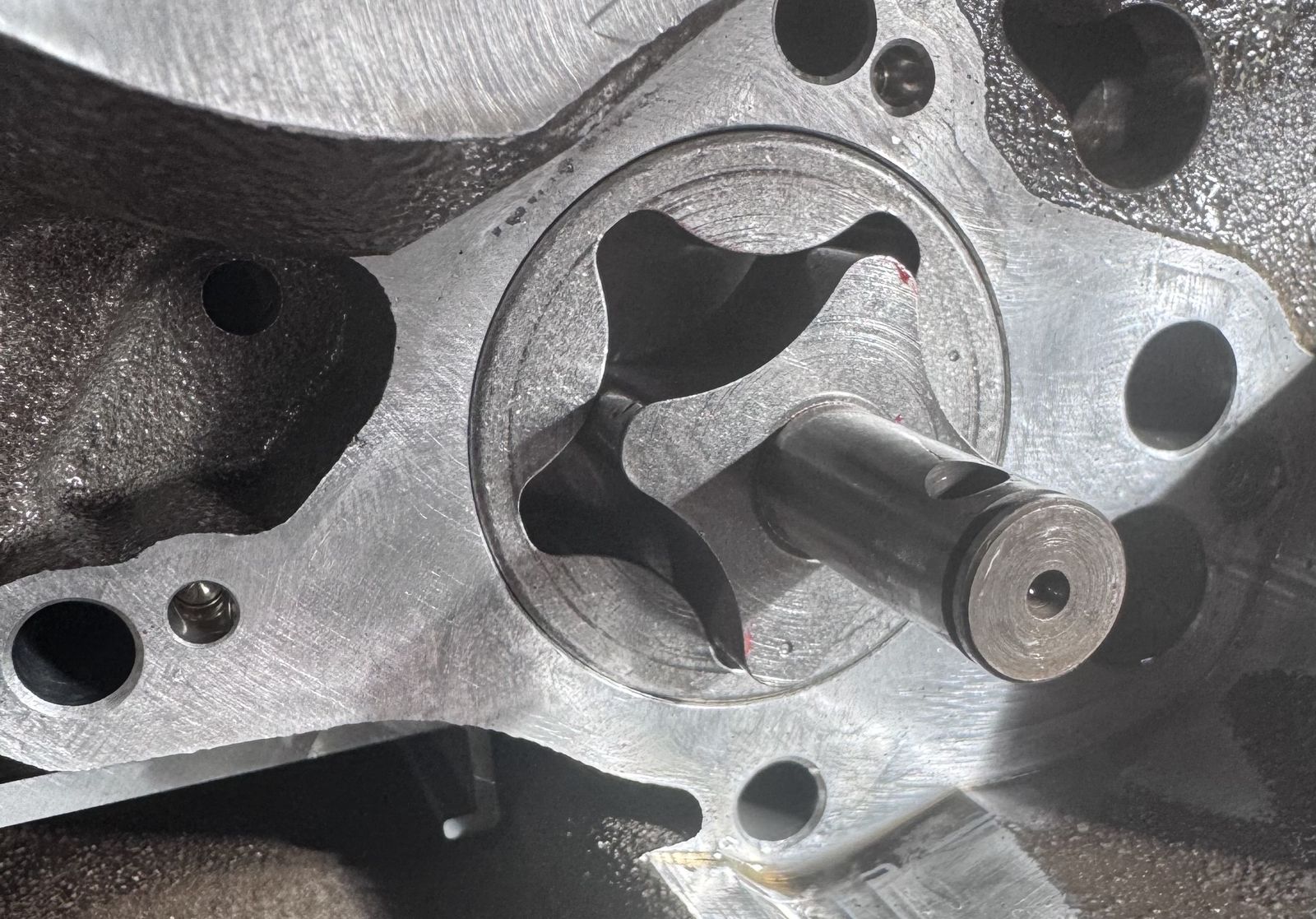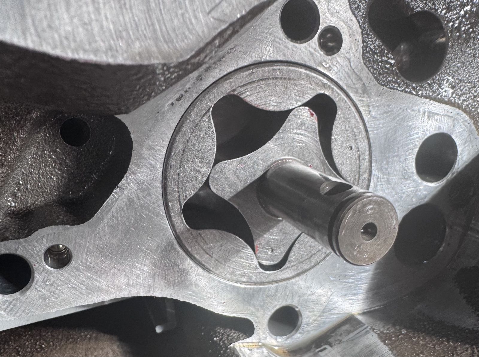 sollte z.B. durch das ungewollte, leichte Herausziehen der Pumpenwelle auf der anderen Seite die Nadelrolle des Innenrotors der Saugpumpe verrutscht sein, wird es tatsächlich aufwändig. Aber ich bin schon etliche Jahre aus der Schrauberei raus und muß mich jetzt mehr auf die Teilezeichnungen und das Reparaturhandbuch stützen als auf konkrete Erinnerung. Sicherlich meldet sich noch ein Kollege, der das besser parat hat als ich.