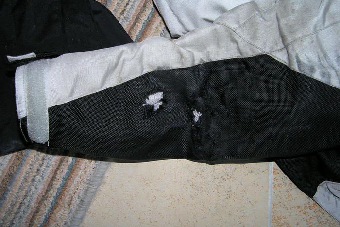 interessant war auch das der aufschlag exakt auf den protektoren erfolgt ist, das war durch die staubige strasse sehr gut sichtbar. am material des anzuges ist rein garnichts dran, war aber halt auch nur relativ langsam und auf so ner hartgepackten lehmstrasse. kann nach knapp 7000km in dem anzug bei jedem wetter sagen das er seine aufgabe vorzüglich erledigt, aber halt zu teuer ist.
