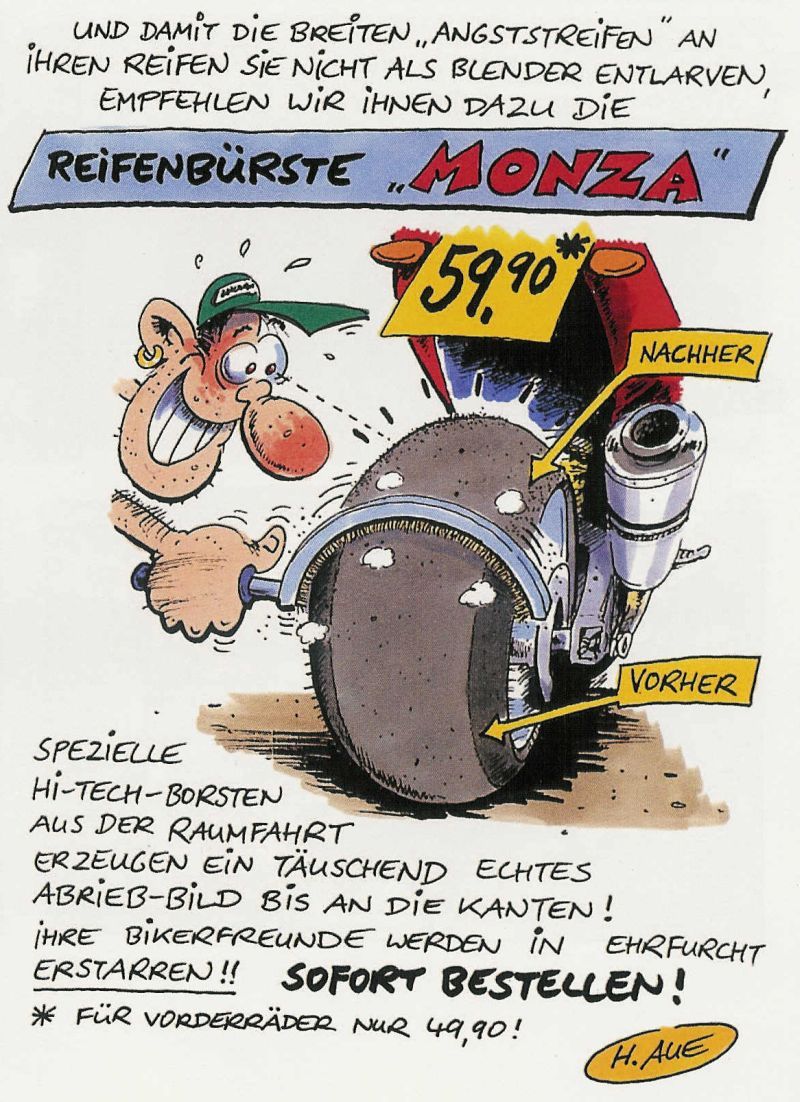 Angstnippel sind die Dinger an den Fussrasten - was die Reifenbürste löst, ist das Problem mit den Angststreifen (auf dem Reifen - nicht in der Unterhose ...)