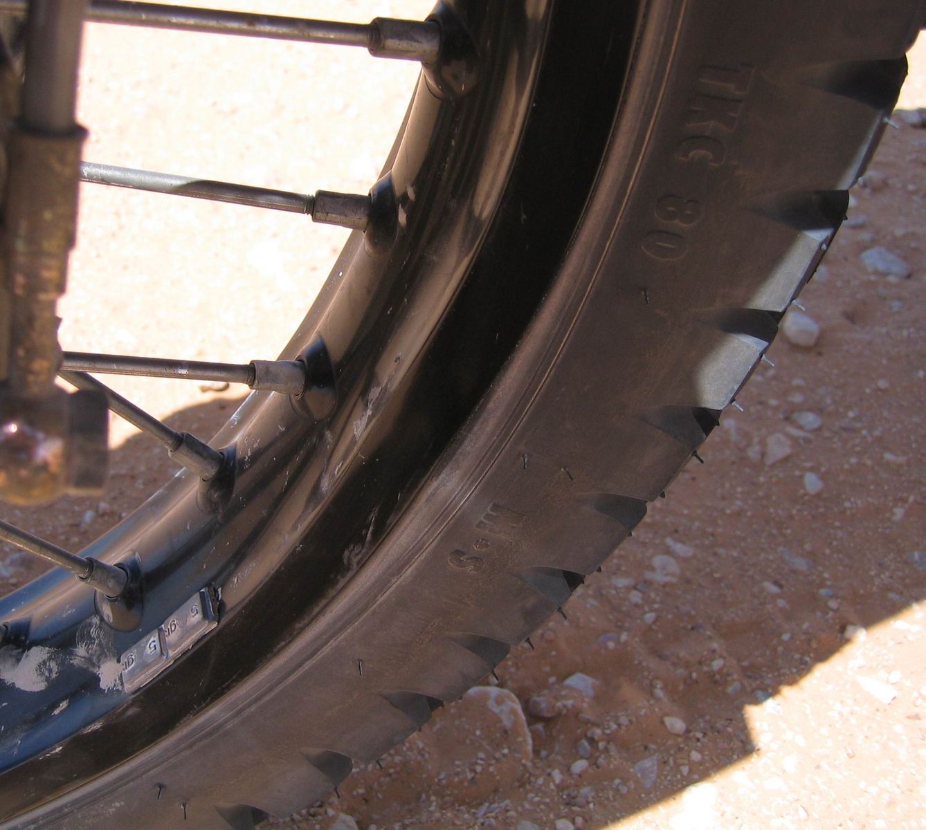 Interessant ist, dass die verbeulten 03er Felgen mit den TKC80 halten.