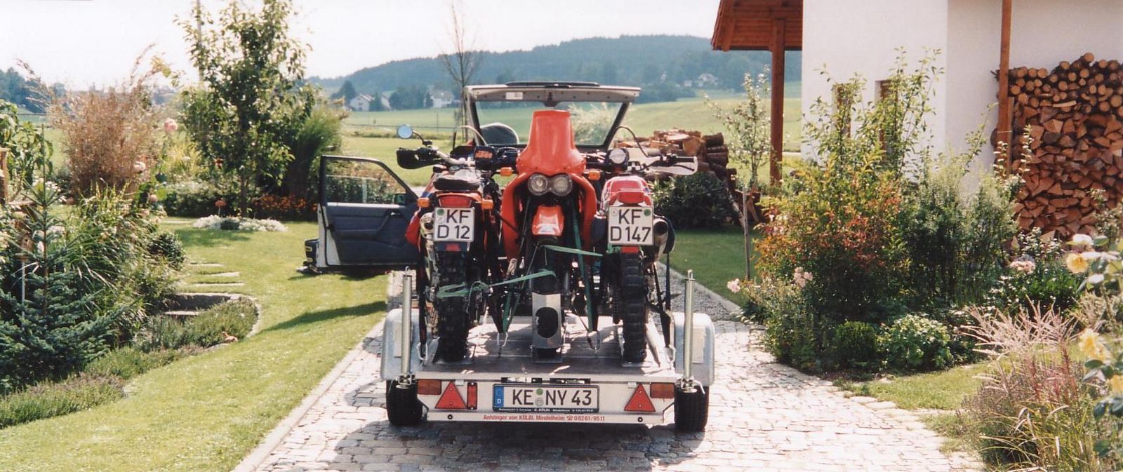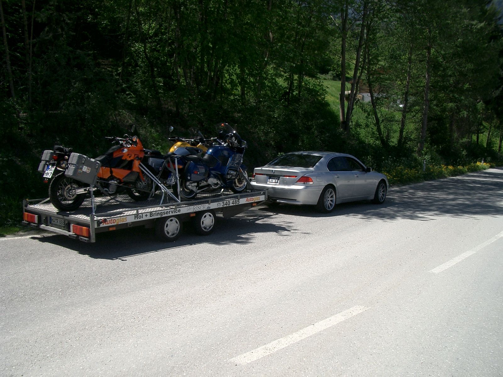 Die Motorräder sind: 1xLC8, 1xMonster 1000 und 1xBT1100. also zusammen etwa 670 Kilo und ziehhhhhhhhhhmlich breit :-)