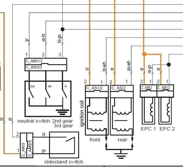 Danke für den Tip aber die Kabelfarben stimmen nicht überein.Aus dem Kabelbaum kommt grau, grünschwarz, braungelb und zum Schalter gehen folgende Kabel weiter: gelbgrün, grün, blaurot genau was soll ich dazu sagen. Das Motorrad geht auch wenn die Kabel vertauscht sind, wollts bloß ordnunghalber richtig anklemmen.