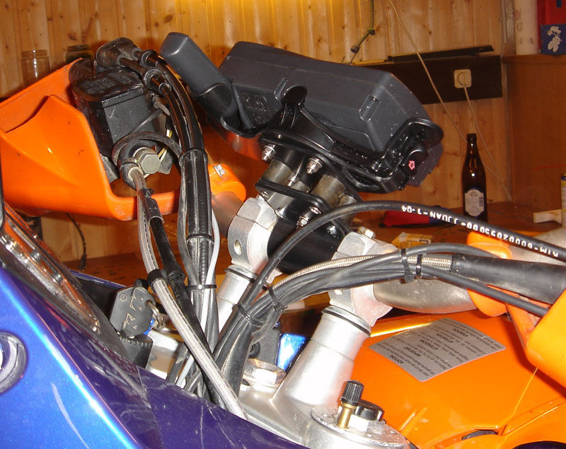 Zu Deiner Befestigungsvariante noch eine Anmerkung: ich hätte auch liebend gern die Antenne dran gelassen. Seitlich ging es nicht, nach ober besteht die Gefahr, daß sie von der Bremsleitung runtergefetzt wird. Ich vermute, daß es bei Deiner Maschine auch so sein könnte, also prüf lieber vorher nach.