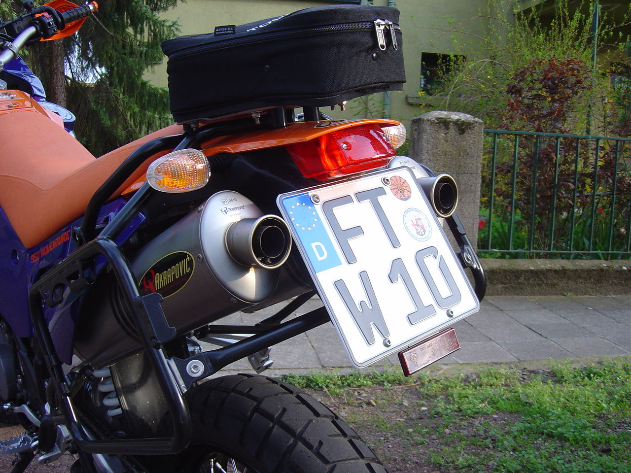 Ich wollte auf das Original-Plastikteil nicht verzichten und war auch etwas skeptisch, ob das Alu Teil einen Sturz im Gelände unverbogen übersteht. Ich hab also einfach ein anderes Rücklicht (natürlich mit LED-Lampe) adaptiert. Durch die Verwendung der LC4-Lampenfassung muß noch nicht einmal der Kabelbaum verändert werden.
