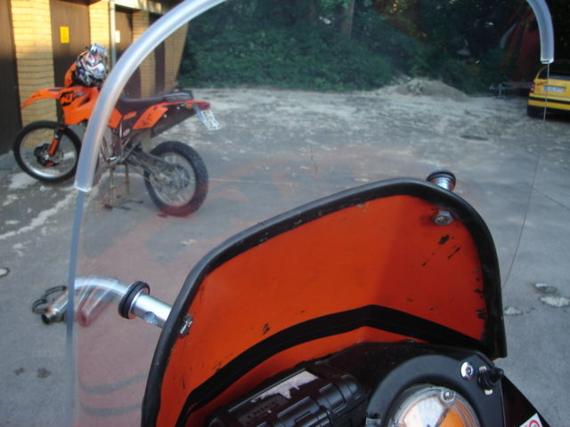 Scheibe eines Mofas oder so -stannt in der vitrine beim KTM Händler und für 40 hab ich sie mit leichten Schrammen mitgenommen -4 Löcher 4 schrauben und geil .