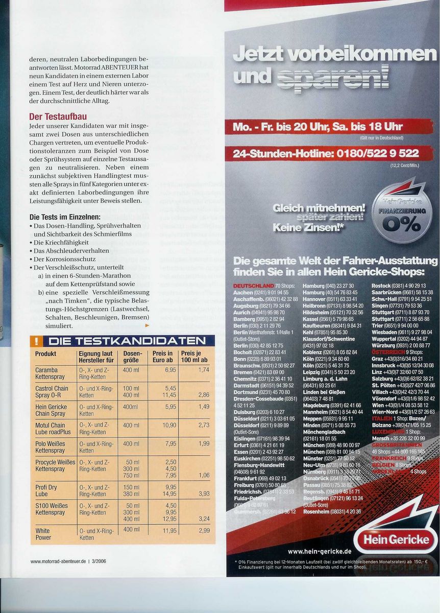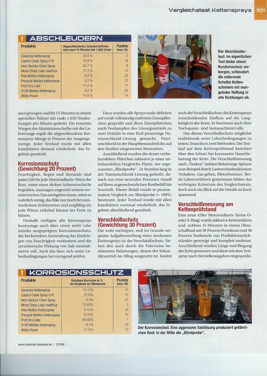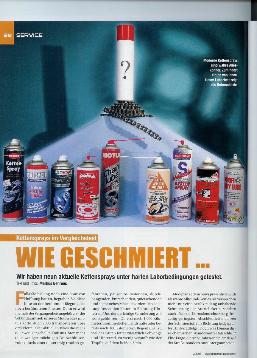 BeitragVerfasst am : Mi, 21. Jun 2006, 7:41    Titel: Test: Kettensprays Antworten mit Zitat