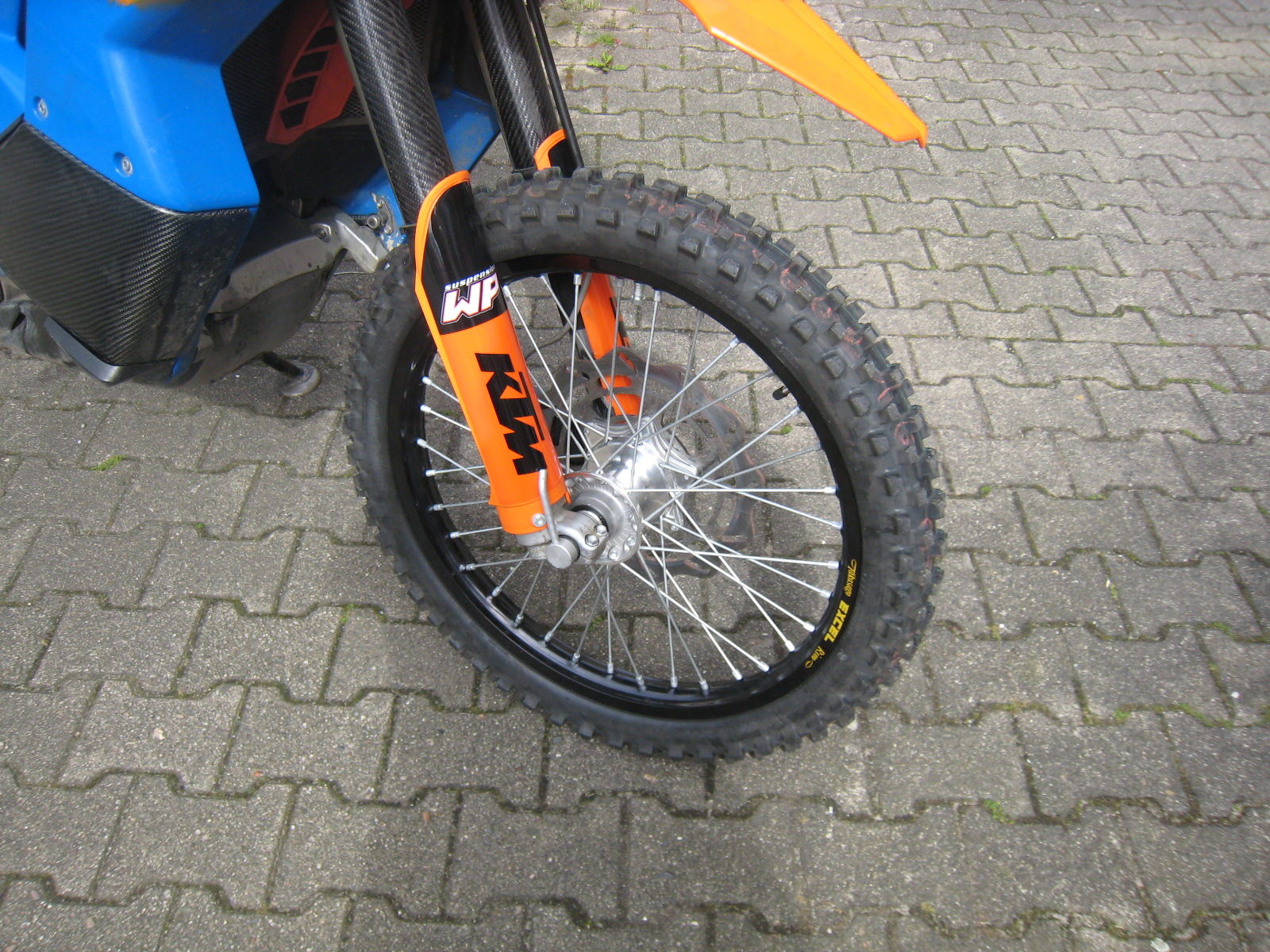 auf dem Foto ist eine triumph tiger mit EXc Gabel und Vorderrad, da das alles 26 mm ist passen die Räder einer EXC,LC8 Superenduro LC4 ab 2004 usw zueinander .die frage ist immer nur ob 1 Scheibe oder 2.