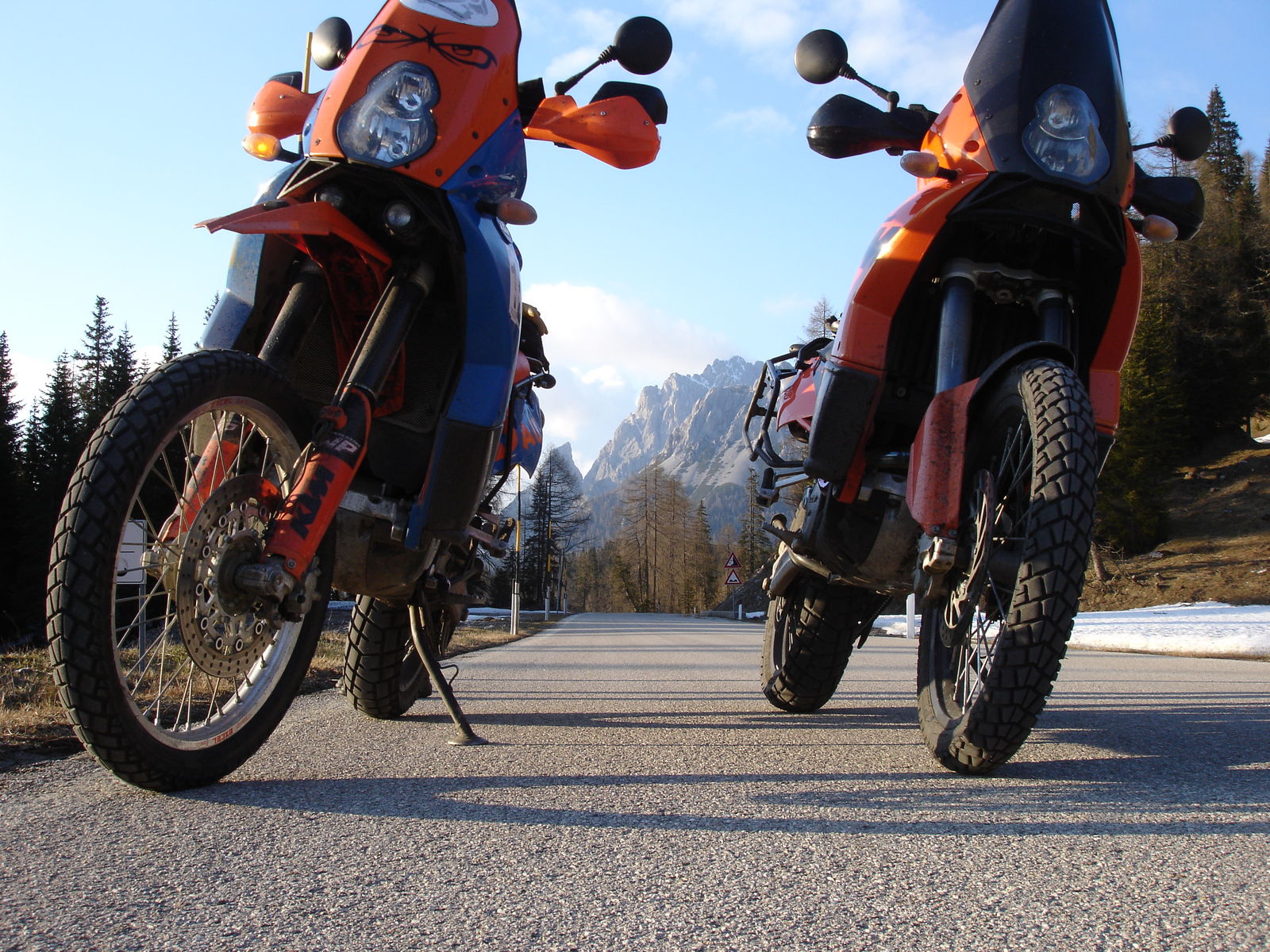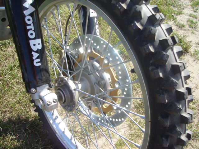1500 km vergleichsfahrt mit 1 Scheibe 320 und eXC Bremsanlage - es reicht und das Moped ist mit der 1.6er Felge vorne und MT 90 IN DEN Alpen wesentlich handlicher als die Serie - Meinung von mir und Zwergenfactory der mit der orginalen 03 als referenz mit war - schneller war trotzdem auf beiden Maschinen .. unsure
