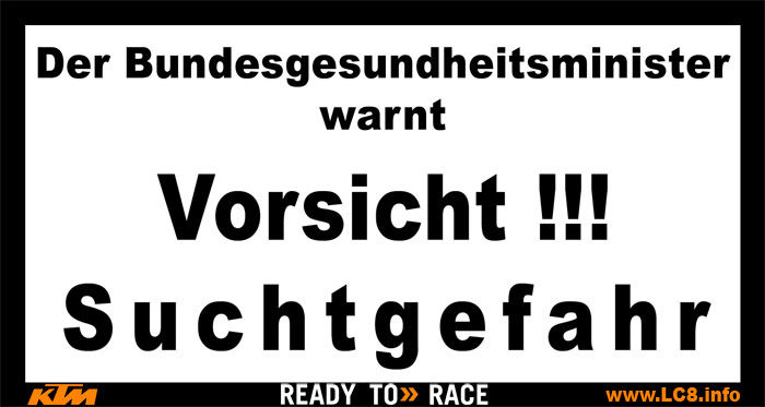 Anmeldungsdatum: 06.07.2004 Beiträge insgesamt: 14775 Alter: 13 KTM LC8 SM 950, 2008 → 26.000 km EXC 450 → 55.000 km