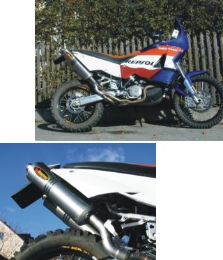 Vielleicht passt ja folgendes: Der Krümmer von AQ für Akras und Hecktanks, dazu die alten Hängetaschen-Hecktanks von KTM für die Rallies, die man schon irgendwie ans Heck bekommt (Fix hats vorgemacht). Das hätte diverse Vorteile: