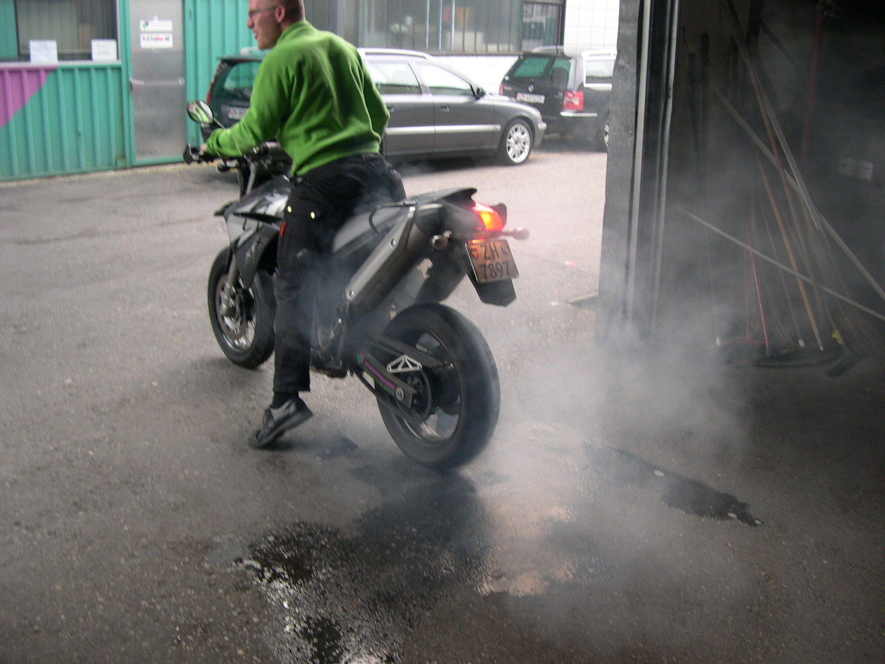 hatte ich dort noch nicht und dann beim Rauf springen auf den Töff und Kupplung Fräsen lassen holperte die Maschine noch ein bisschen nach vorne und daher entstand auch nicht so ne extreme Rauch Entwicklung.