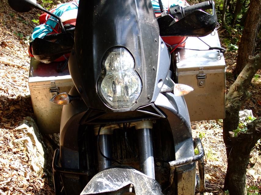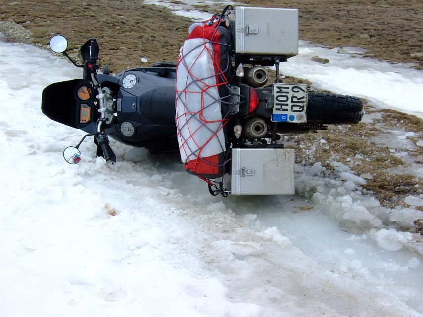 Kati wird mir immer vertrauter. Haufenweise Paesse, etwa 350km offroad bis zur Schneegrenze. Wo ist nur das Reifenprofil abgeblieben!?