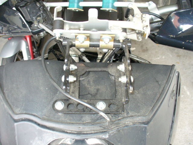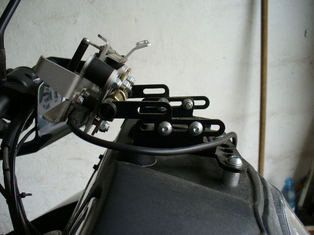 Am Lenker eine Mittelstrebe montieren.(daran kann man auch ein Roadbook befestigen) und dann die Halterung wie auf dem Bild.