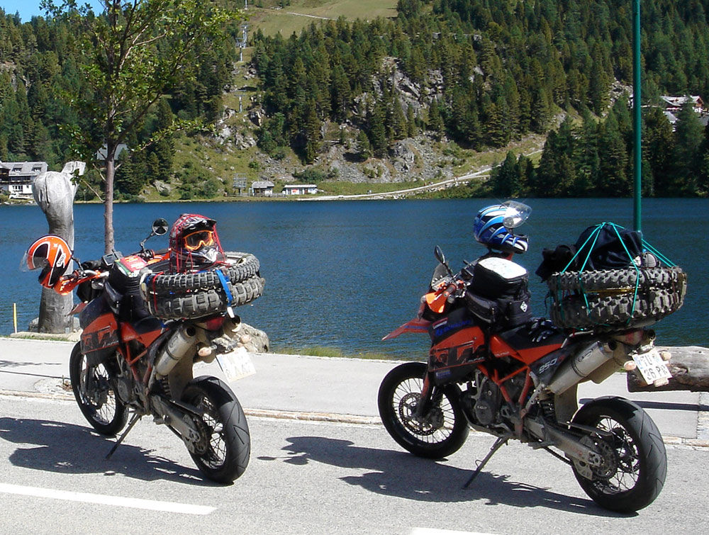 man nehme vorn einen BT45 in 90/90-21 und hinten an ContiRoadAttack