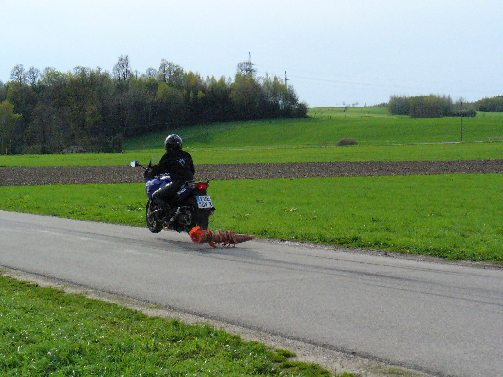 Hat nen Kumpel von mir immer mit der 125er Suzi gemacht. Gab öfter mal lecker Hase, denn wenn man den in der Wiese erwischt geht der auch nicht so kaputt Mr. Green