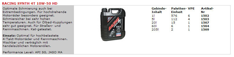 das hier meine ich : Liqui Moly RACING SYNTH 4T 10W-50 HD